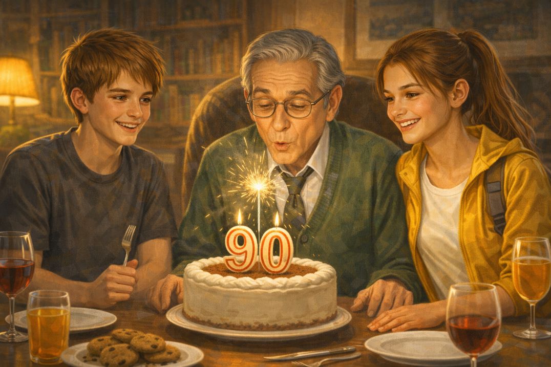Докато свещите горяха, Антонини затвори очи... и устните му леко се раздвижиха. Изчака последните искри от фойерверка, пое си въздух и от първия път угаси двете малки пламъчета.